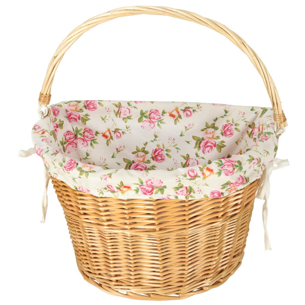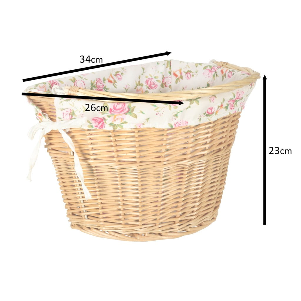 Kosz na rower z wikliny przyda się podczas każdej przejażdżki! Jest pojemny, dzięki czemu bez problemu umieścisz w nim torebkę, plecak, a nawet zakupy. Posiada materiałowy wkład w kwiatowy wzór.