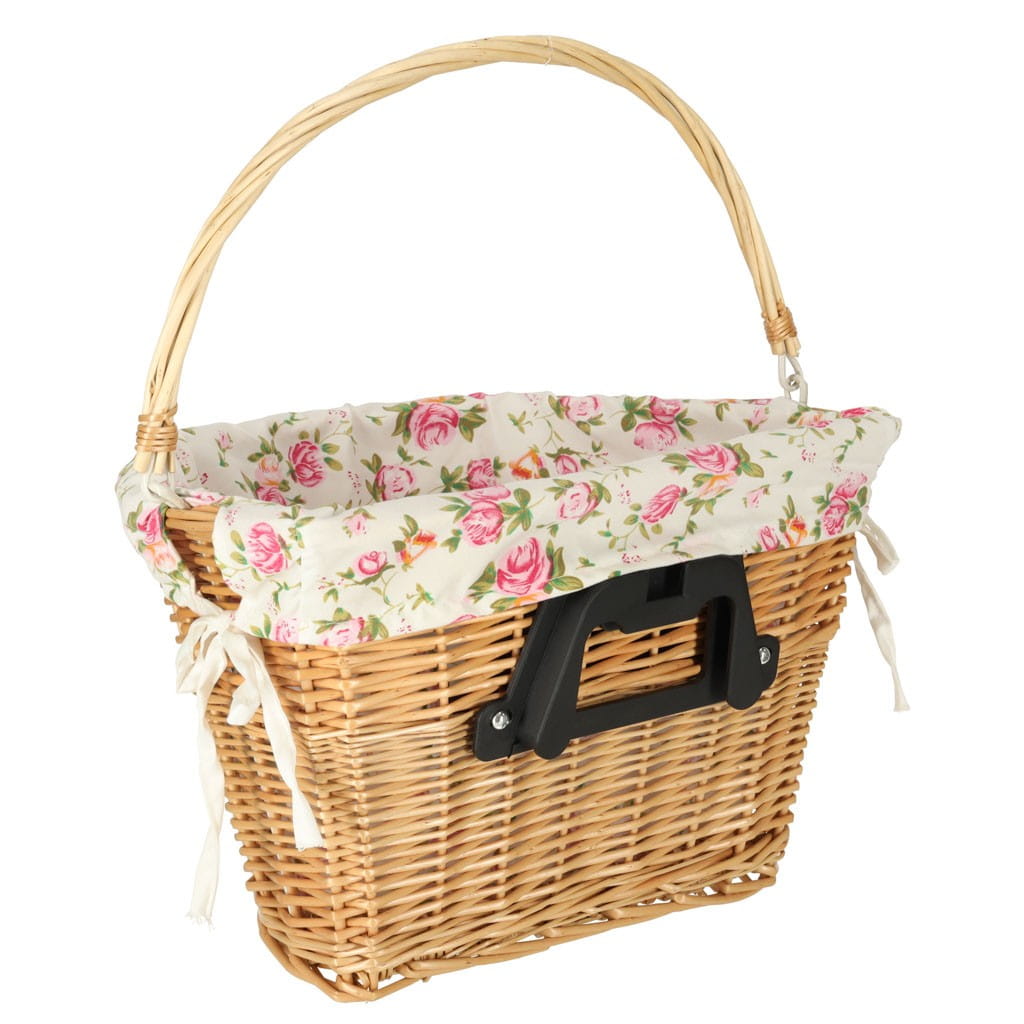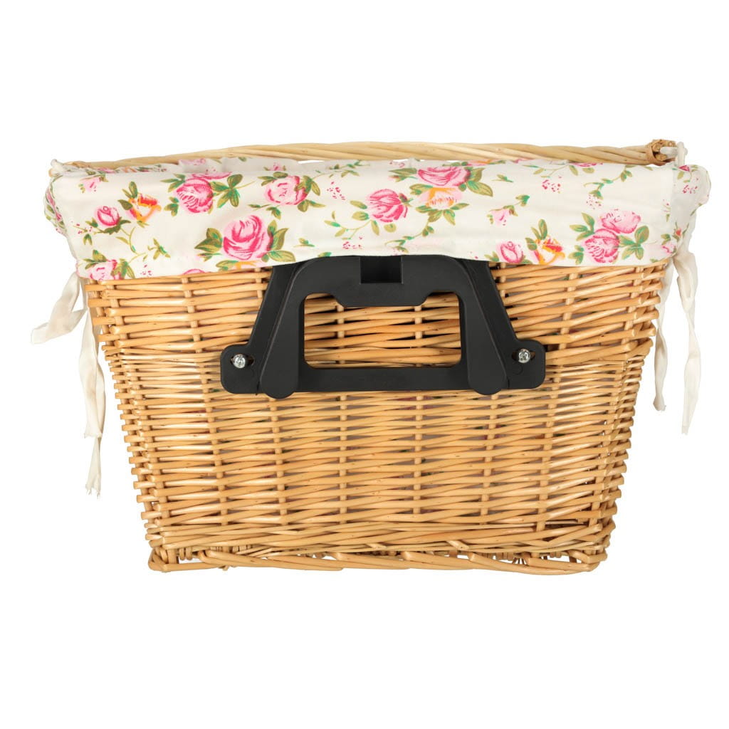 Koszyk rowerowy wiklinowy na rower RALLEX przedni pleciony click w kwiaty